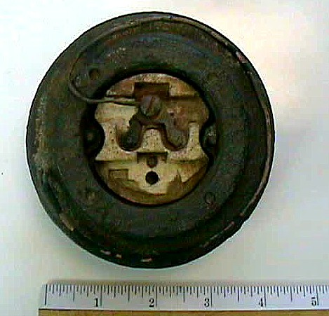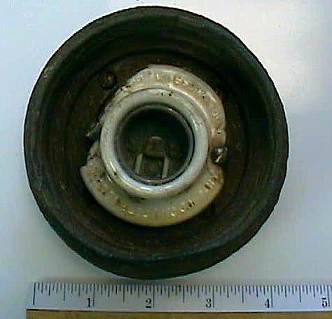 This recent metal detector find is a very old light fixture made by the Appleton Company, and the porcelain socket is identified by a model number. Upon contacting the Appleton Company, and showing them this fixture & info marked on it; they provided the following information. The fixture was manufactured by their company prior to 1950, it was designed for 60 to 300 watt incandescent bulbs, and it had options for two different types of socket mountings. Unfortunately, they did not have any of their catalog books from the 1930's to early 1940 period, but it appears to be one of the very first fixtures they made. This leaves us with these conclusions: 1) that it is definately from either the 1940 or 1950 bridge; 2) it is not one of the roadway lights as they were sodium vapor fixtures; 3) it is unknown if this fixture was part of the bridge's interior elevators or work stations- or if it was a light mounted on the bridge & used strictly for the construction. If it was part of the bridge- it would have been from the 1940 bridge; or if it was from the existing 1950 bridge it would have been from the construction. In either event it is the only known lite fixture from the Narrows bridge.