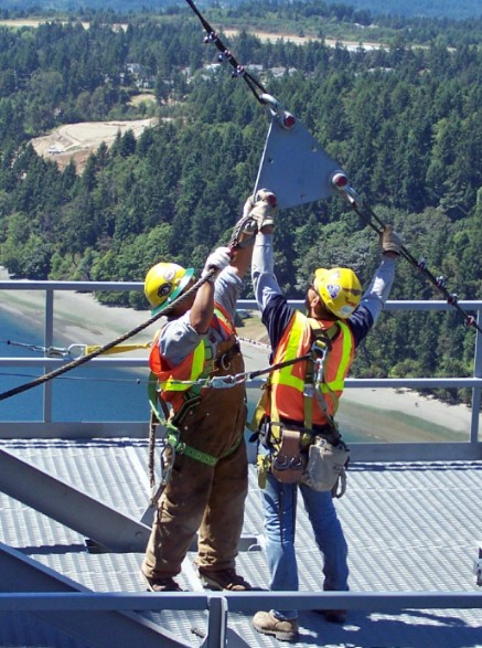 Above is a photo of two TNC workers using the same type of Delta Plate on the 2007 bridge. Notice that they both have safety gear on, and they are fastened to safety lines. Photo is courtesy of a worker from the TNC crew.
