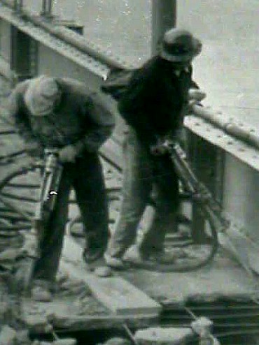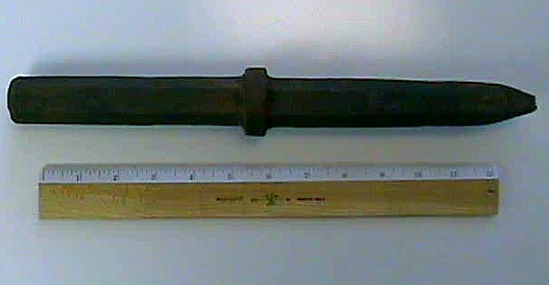 Another shorter jack hammer end bit has been discovered, as seen above. This one is a little shorter, and if you look at the 1940 photo above closely you can see that the men used different sizes on different sections of the bridge. The shorted the blade, the higher the impact level; which makes sense for thicker and thinner areas of demolition.