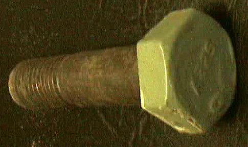 The length and diameter of the shaft on this bolt suggest it might have been one that held a Galloping Gertie cable band in place. The left end still has the original lock washer, and that was the end which got cut off in order for the bolt to get removed.