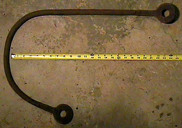 The object in the photo below may or may not have been part of the bridge. It is large size, and the flanged holes in either end seem to be for fastening. The bar between is thick and rigid, designed to be made in this shape.