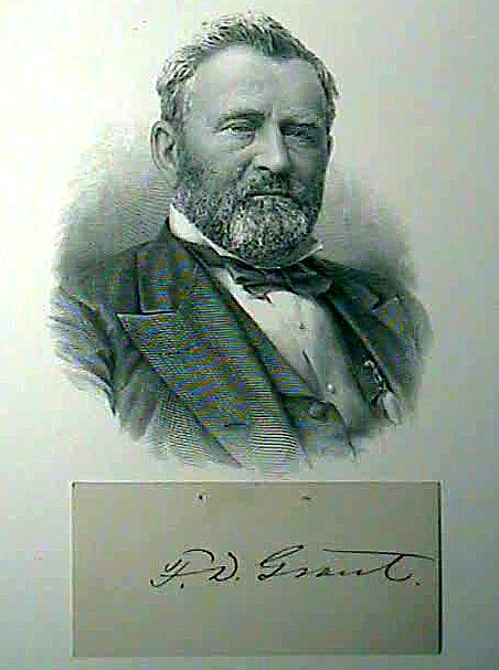 ITEM 765: A genuine Autograph of President Ulysses S. Grant's 1st son; Frederick D, Grant. Signed in ink on card stock, circa the early 1900's. Includes a copy of the U.S. Grant picture.