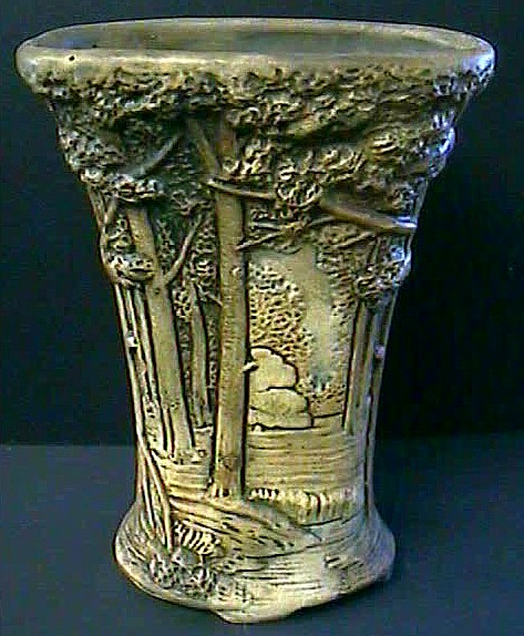 ITEM 926: Antique Weller pottery pillow vase, Forest pattern. Very rare and highly sought after.
